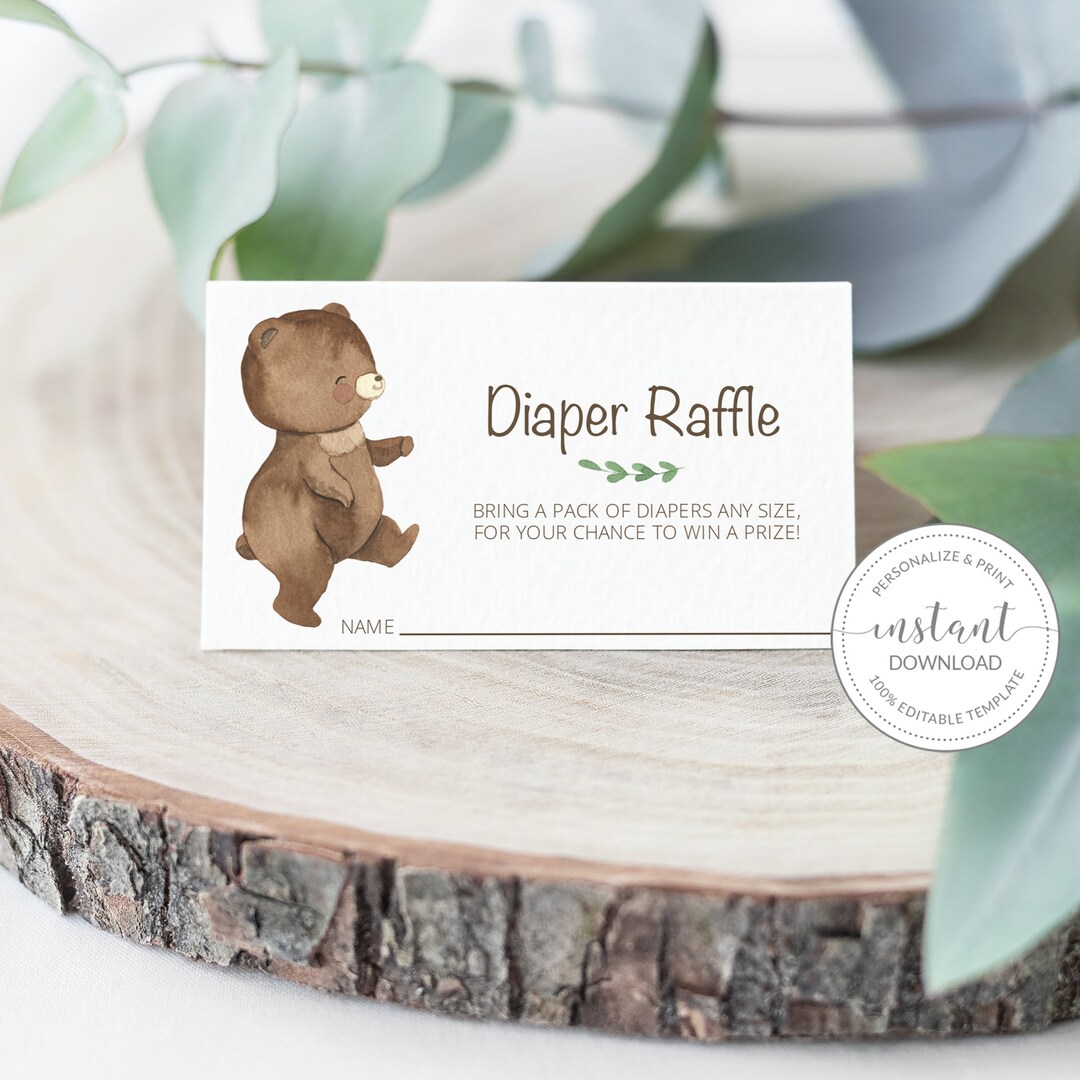 Teddy Bear Diaper Raffle Ticket Printable Teddy Bear Baby Etsy Israel